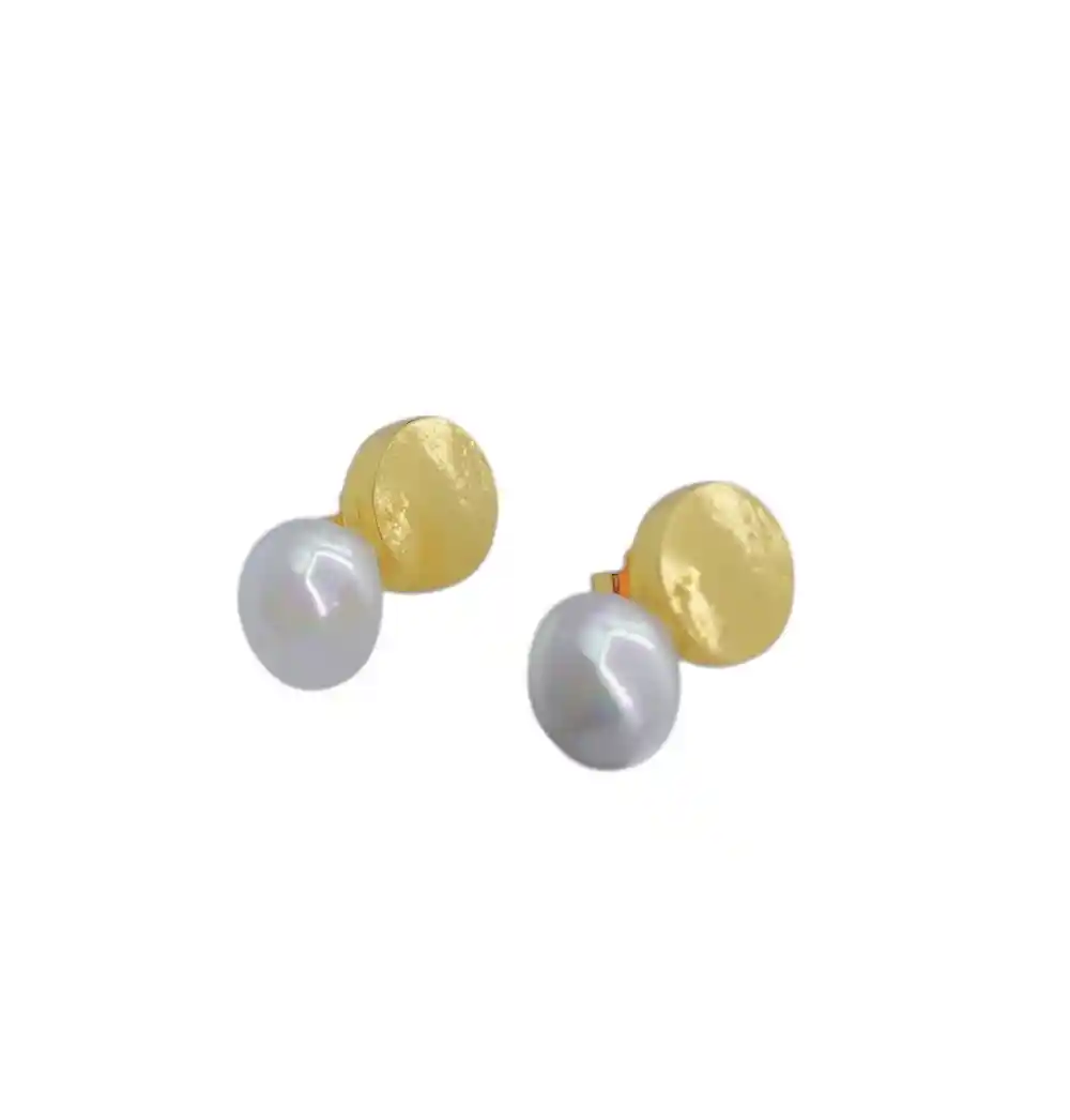 Material: Peltre y Perla Cultivada (sin Níquel, sin Plomo) Acabado: Chapado Oro 24K Cierre: Tuerca presión Medidas: 15mm